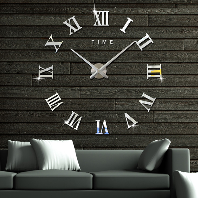 Fashionable Roman Numeral Wall Clock DIY Ornament Home Office Hotel Decoration Gift Silver
