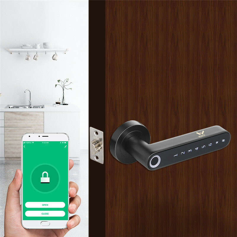 Feature:1.Simple Installation:No cord and no professional are needed. It fits most doors that uses lever door lock and is applicable to both left and right handle.2.Easy Operation:You can not only unlock the door with your fingerprint or the code you set, but also can open the door with APP, very smart and convenient.3.Indubitable Safety:Your fingerprint is unique in the world, which guarantee the safety without doubt. Taking advantage of technology of semiconductor and biological characteristics is adopted, which avoids the same fingerprint. What's more, made of durable Zinc Alloy material, its quality is reliable.4.One-step Accessing:Ergonomic design, easy for you to unlock the door within 1 second by putting your fingerprint on it. It will lock for you automatically, keeping you and your home security all the time.5.Energy-saving Design:No more worry about pollution or wasting money. With built-in lithium battery, it can be used for a year after being fully charged for 30 minutes.(The charging interface is on the end of the handle.)Versatile Lock:Meeting the standards of most lever lock, equipped with a bag of screws and a latch (60mm), you can fix it on your door which the thickness of the door is 35-55mm.