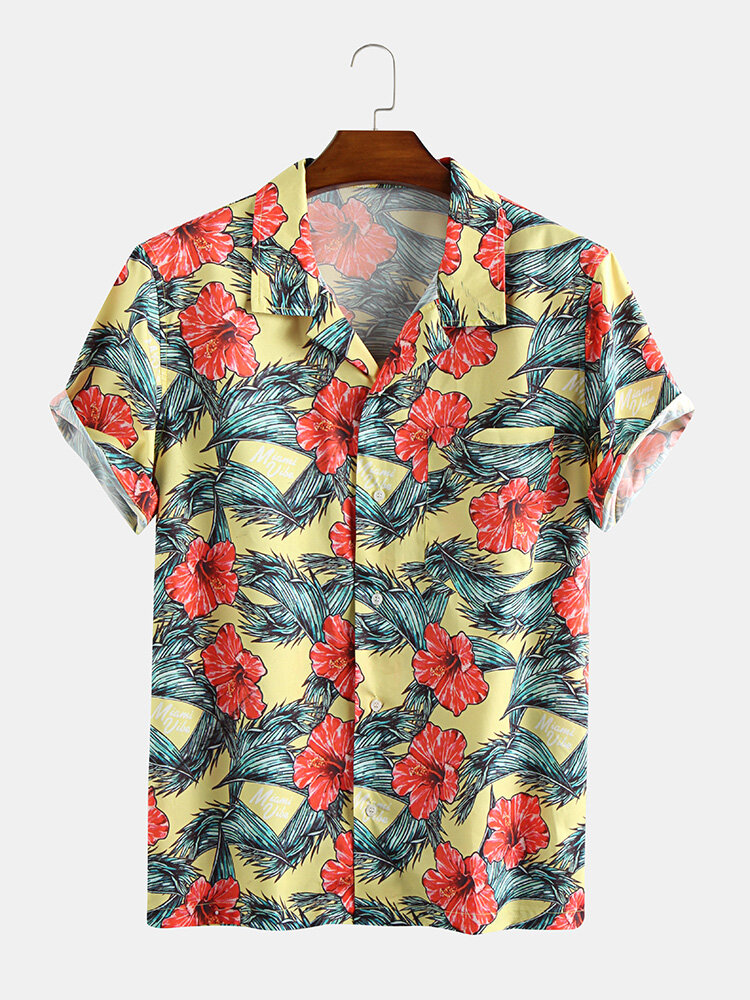 Floral Print Short Sleeve Hawaiian Shirts – M Red