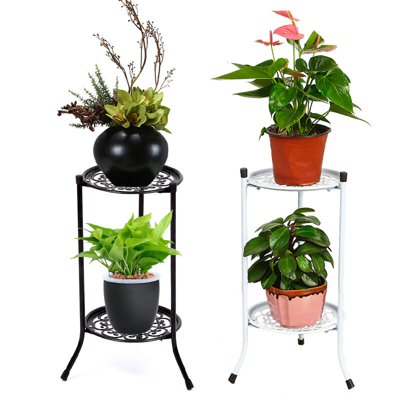 Flower Stand Double-Layer Wrought Iron Black/White Plant Rack Holder – Black