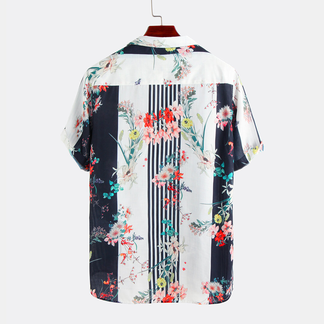 Flowers Stripe Mixed Print Short Sleeve Shirts – 3XL White