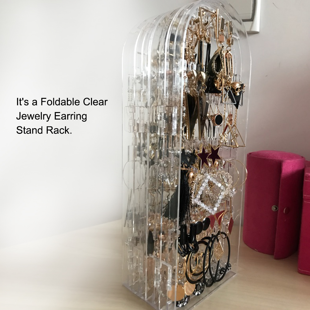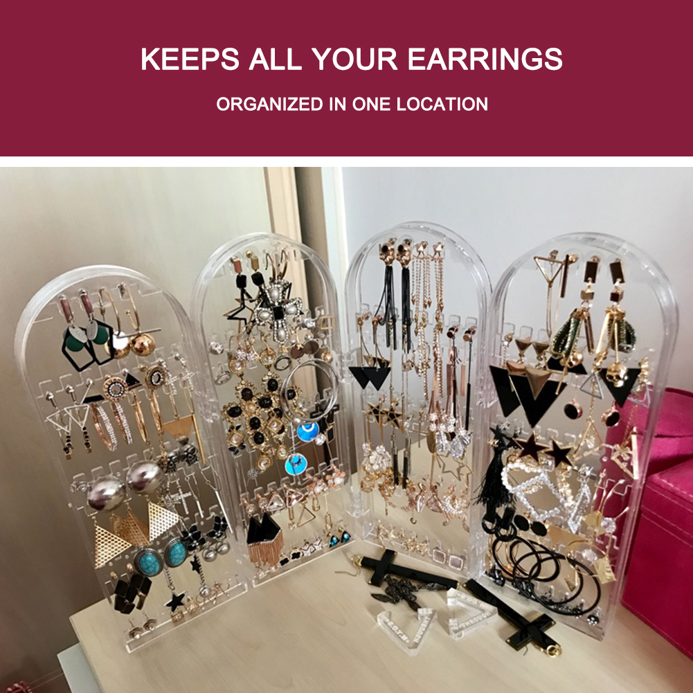 Foldable Clear Screen Jewelry Earring Stand Rack 4-Panel 240 Hole Earrings Showcase Display Organizer Holder Perfect For Necklace Bracelet C