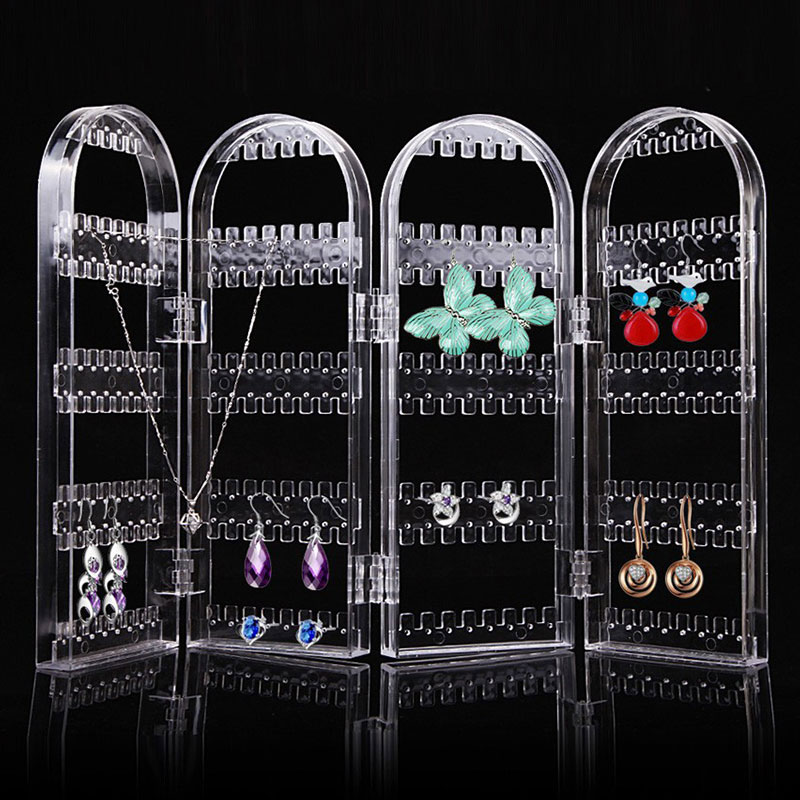 1.4-Panel 240 Holes. Displays a full range of earrings up to 120 pairs, as well as numerous necklaces and bracelets. 2.Perfect earring tree for most styles of earrings including studs, drops and hoops. 3.Great for use in the home and commercial use in boutiques and craft fairs. 4.Made of High Quality Clear ABS Plastic. Modern, Unique and Pratical. 5.Fully opened size 28 * 14 * 4cm approx. Keeps all your earrings organized in one location.