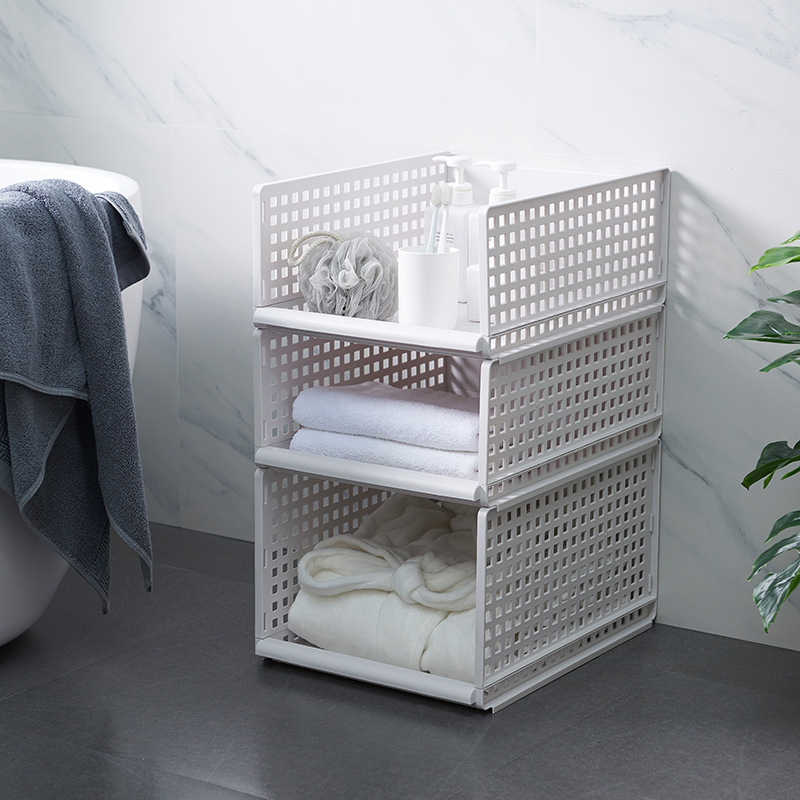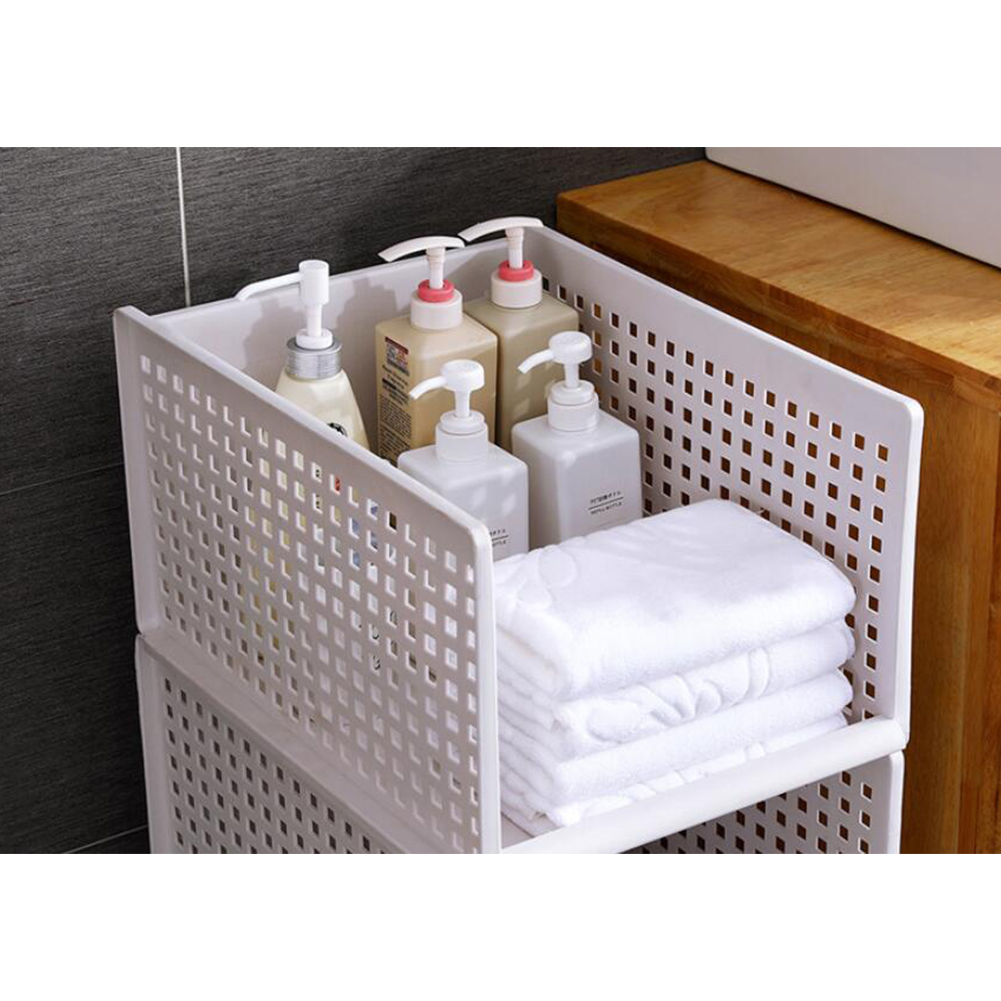 Top-ranking material, with breathable holes, safe to use. Foldable and stackable storage basket, small size after folding. Can be used as a basket, can be used in bathrooms and other places.