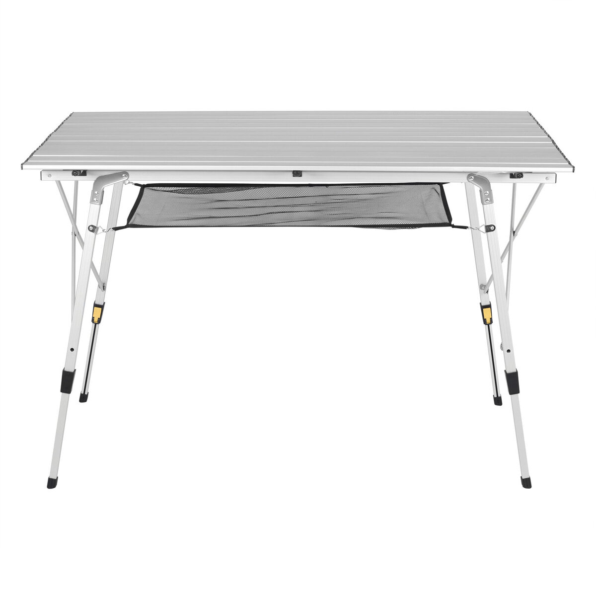 ? The folding camping table is made of aluminum, which is particularly light and robust – due to the material, the folding table is largely silver.