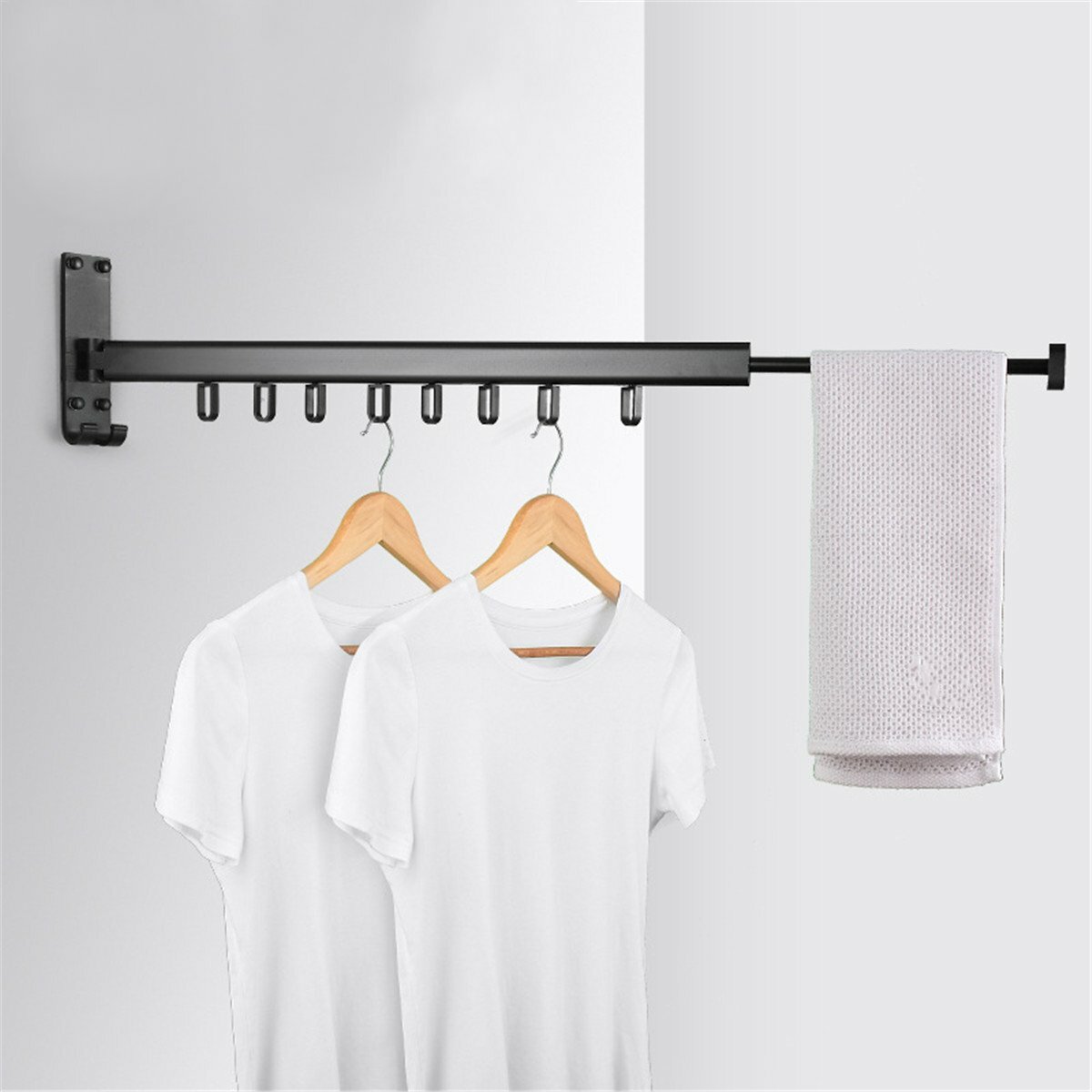 Folding Clothes Hanger Wall Mounted Telescopic Drying Rack Balcony Room Outdoor – Black Type A