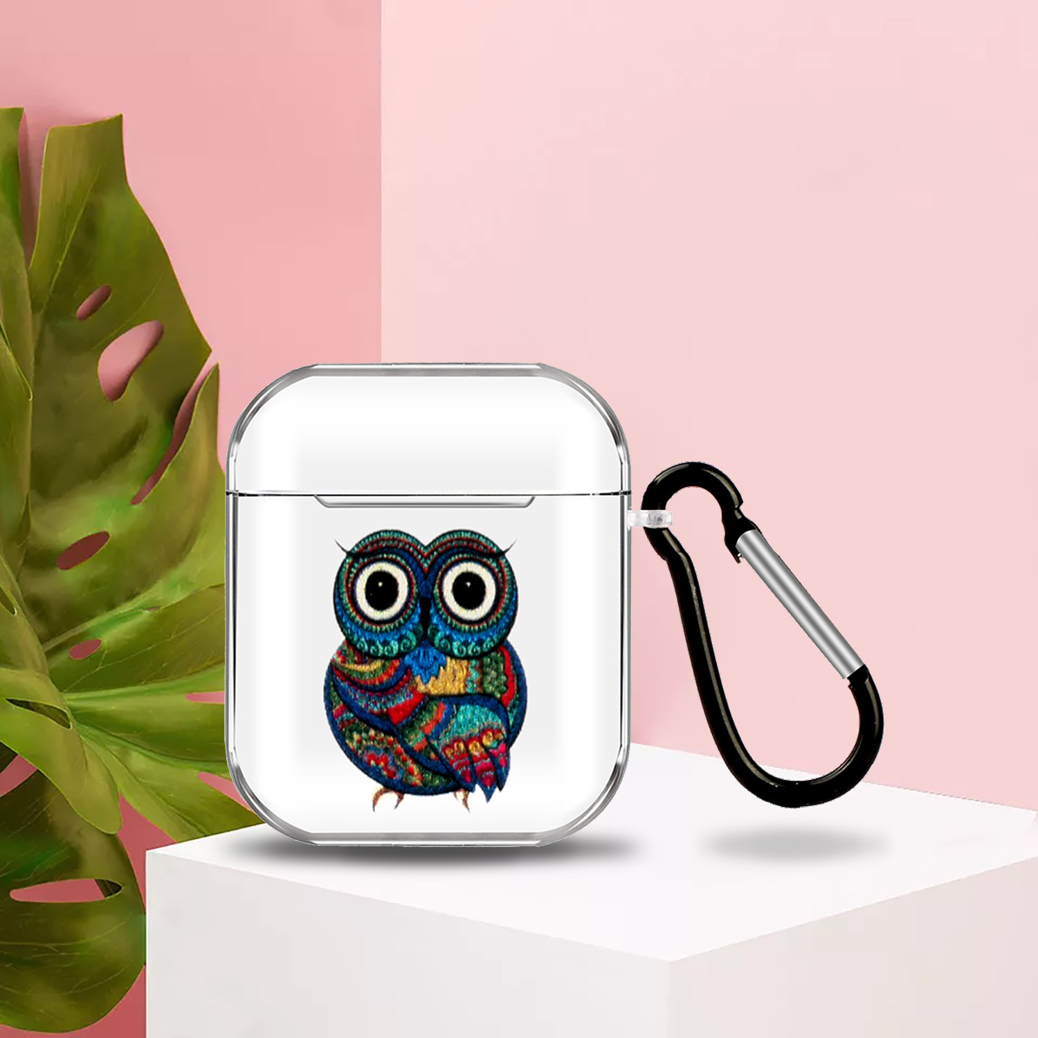 For AirPods 1/2 Headphones Case Portable Clear Cute Earphone Shell with Metal Hook Overall Protection 9 Owl