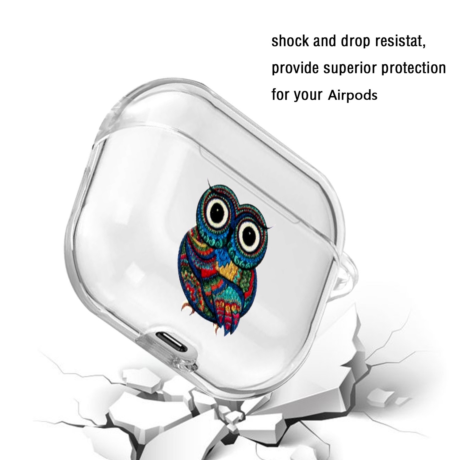 Clear headphone case with cute pictures, perfectly fits for AirPods 1/2.Compact design, lightweight and portable.Full protection, with metal hook, no need to worry about falling.Made of eco-friendly material. Easy to install and remove.