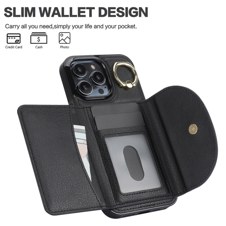 For iPhone 14 Pro Max YM007 Ring Holder Card Bag Skin Feel Phone Case(Black)