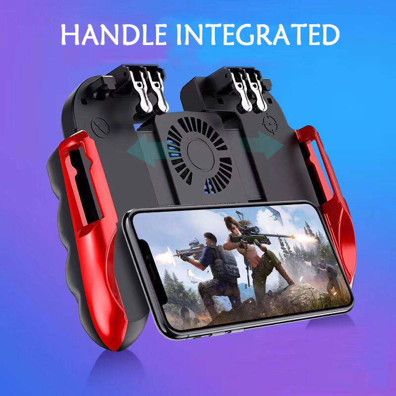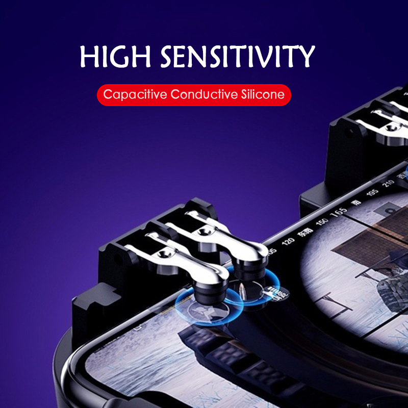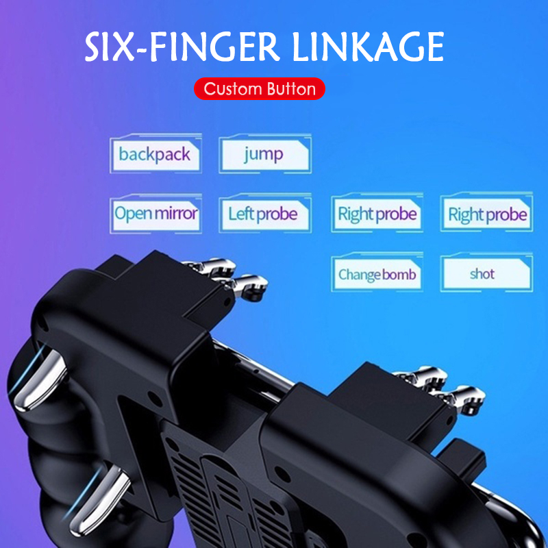 for PUBG Mobile Game Controller Trigger Fire Button Six Finger with Cooler Holder iPhone Android Smart Phone Gold