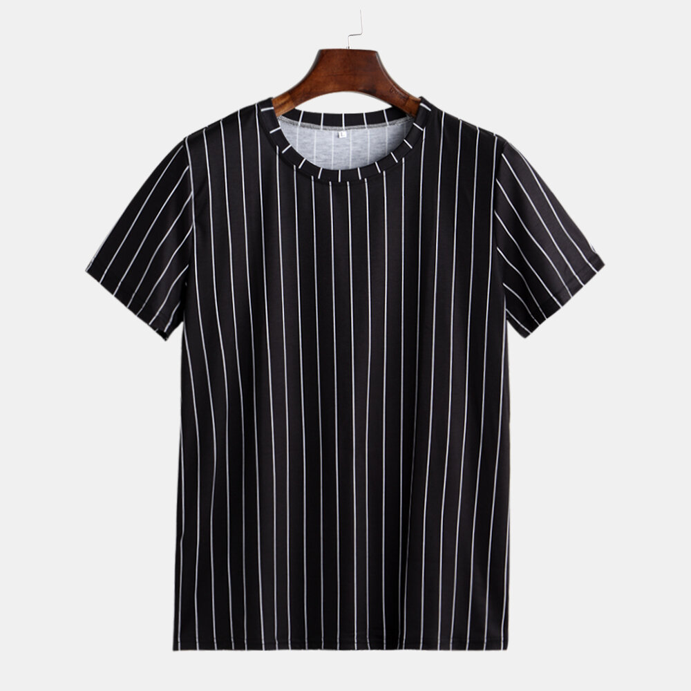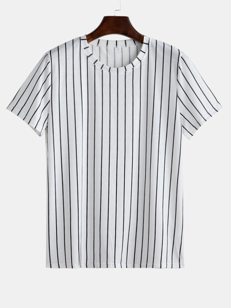 Item Type: ShirtsPattern Type: StripeGender: MenFit Type: FitStyle: Casual, FashionThickness: RegularCollar: Crew NeckSeason: Spring, SummerMaterial: PolyesterColor: Black, White, GrayCuff Type: Shirt SleevesOccasion: LeisureSleeve Length: Short Sleeve