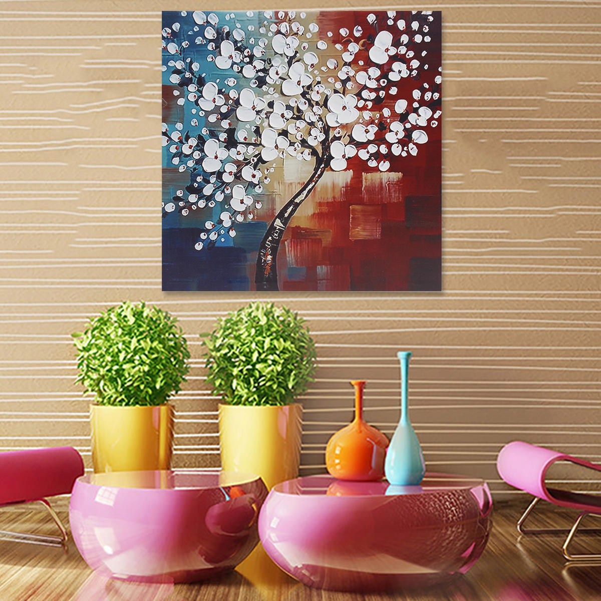 Framed Abstract Flower Tree Canvas Print Oil Paintings Picture Home Art Decorations – 30x30cm