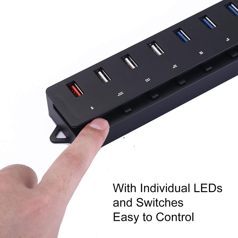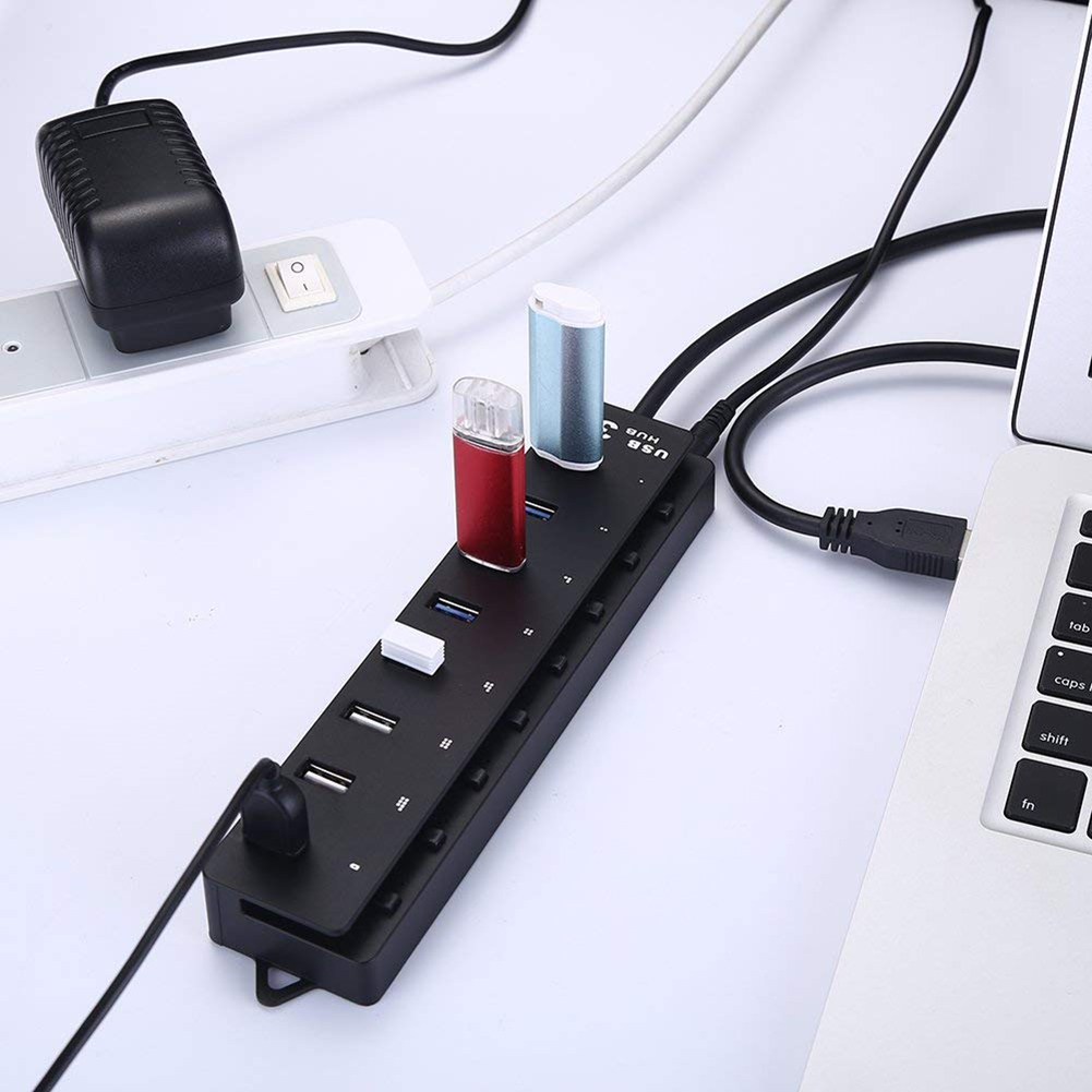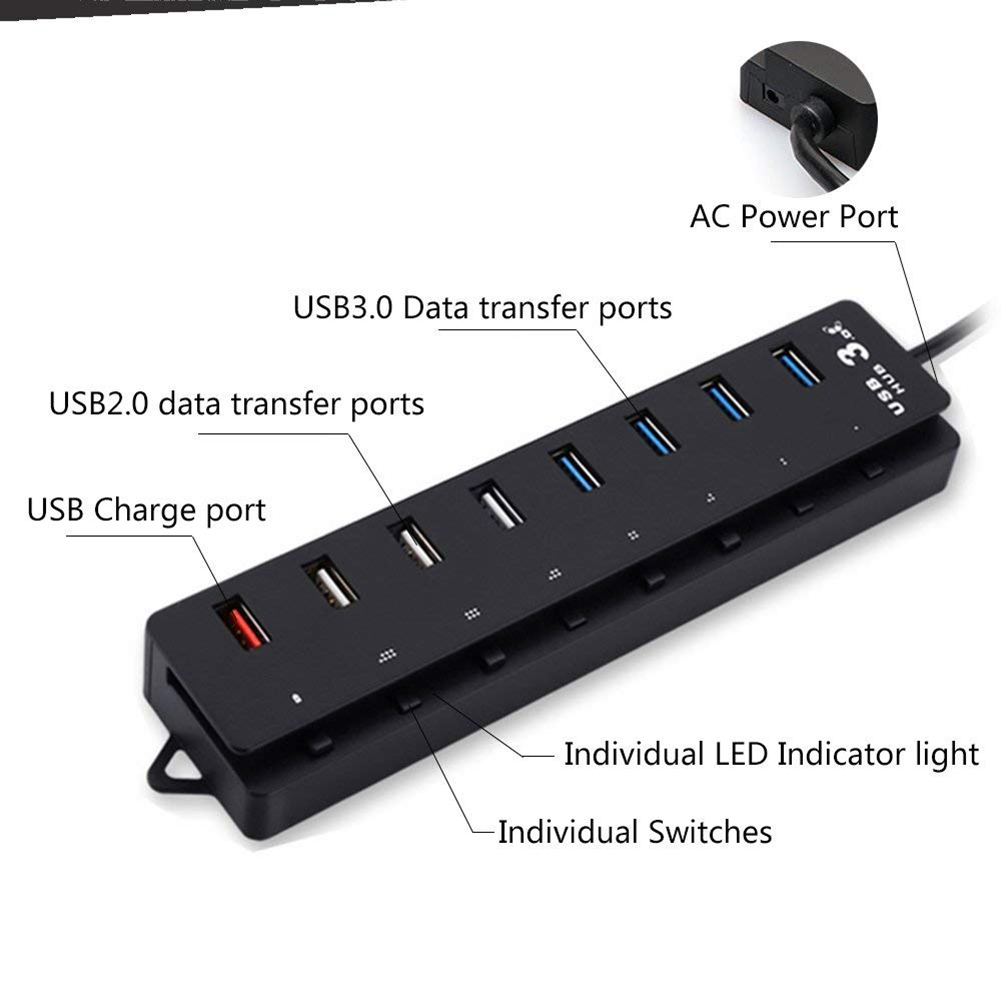 Each interface of the 8-port HUB has an independent switch, which saves electricity and protects the environment;Convenient: Each interface of 8-port HUB has a power indicator light, which is more convenient to use;Comes with a 60CM long USB3.0 data cable, which is easy to carry and use;With one more USB smart charging port, built-in 2A/1A automatic adjustment chip, can intelligently control the large/small current supply according to the needs of mobile phones and other devices;