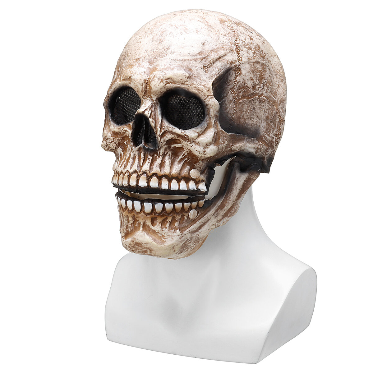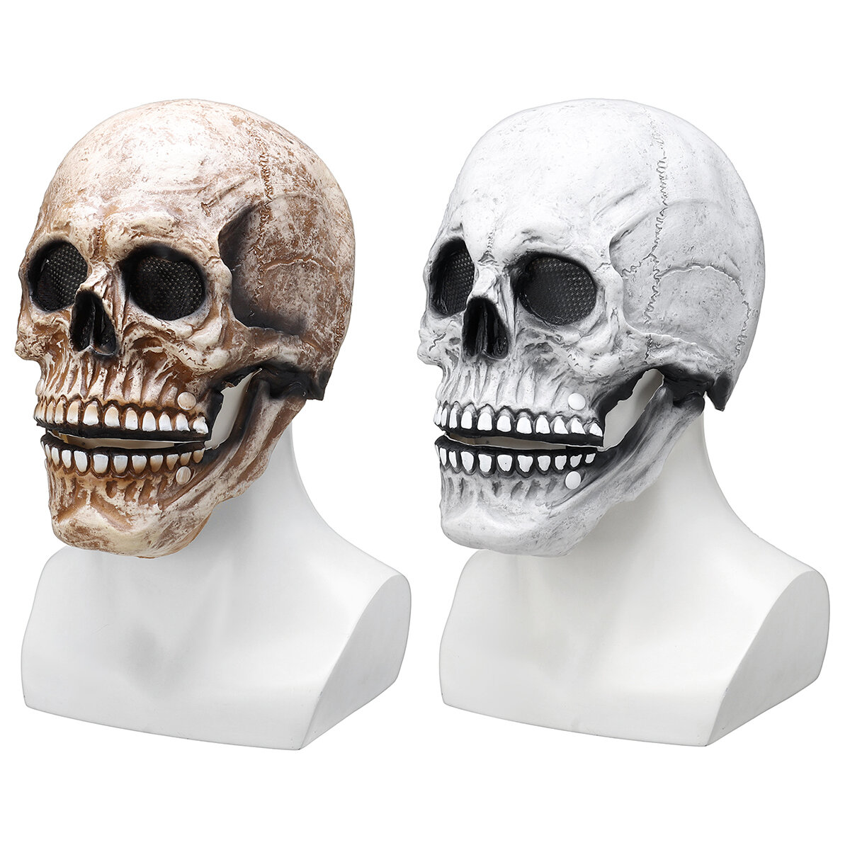 Full Head Skull Mask Helmet with Movable Jaw Halloween Party Prop Latex Headgear – White