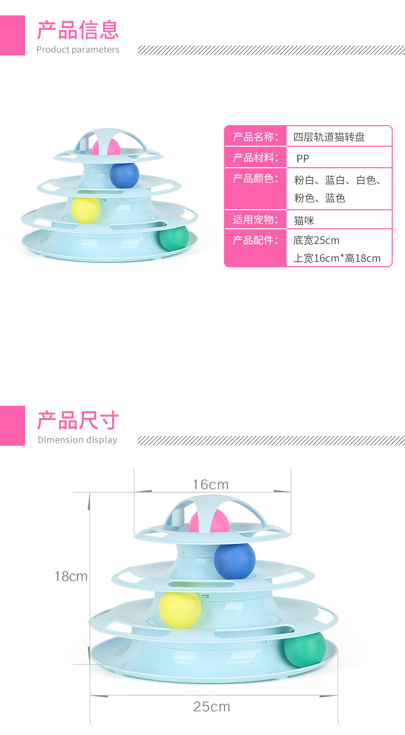 Funny 4 Layers Turntable Interactive Toy with Balls Teaser for Pet Cat