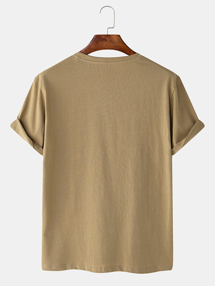 Description:Item Type: T-ShirtsPattern Type: Solid ColorGender: MenFit Type: FitStyle: Casual,FashionThickness: RegularCollar: Crew NeckSeason: SummerDecorations: CartoonMaterial: CottonSleeve Length: Short SleeveColor: Black,White,Yellow,KhakiCuff Type: Shirt SleeveOccasion: Leisure,Home,Daylife
