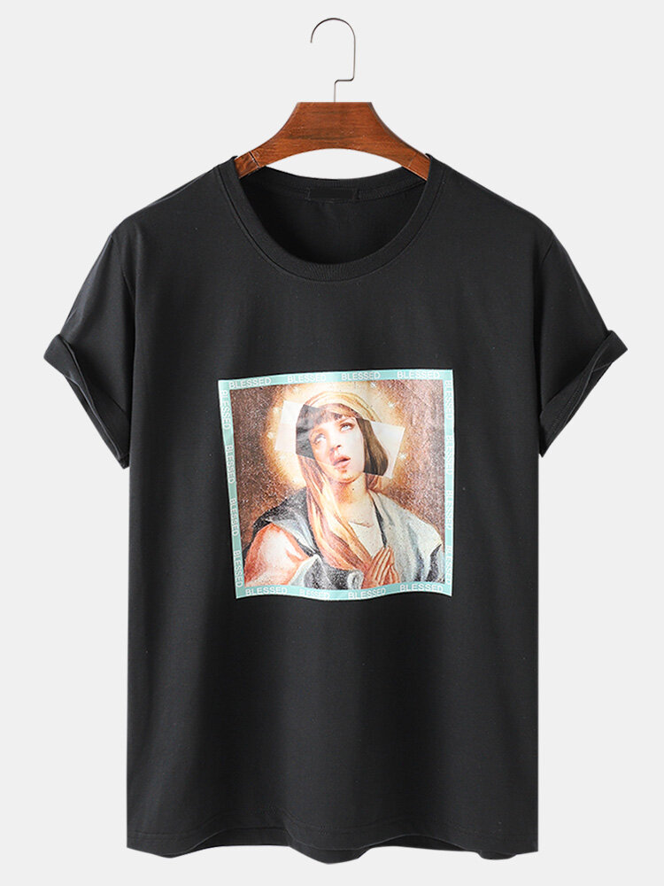 Funny Figure Print Short Sleeve Loose Cotton T-Shirts – Grey L