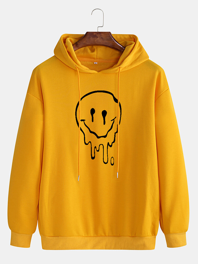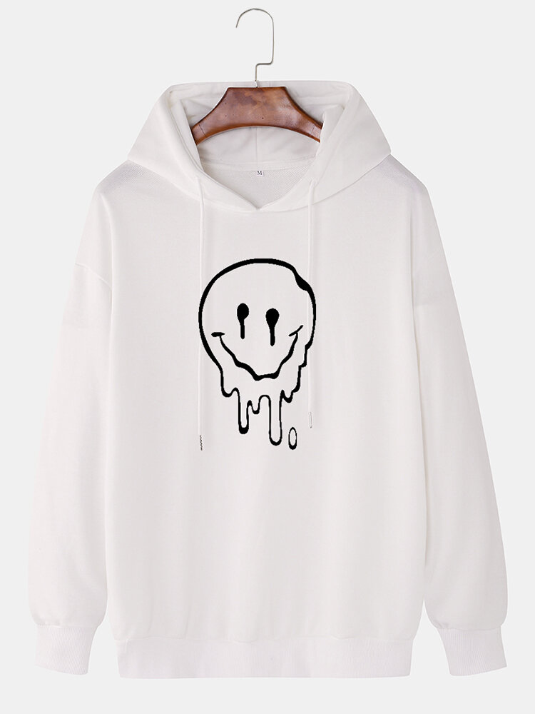 Funny Grimac Print Cotton Pullover Long Sleeve Mens Simple Hoodies – White S