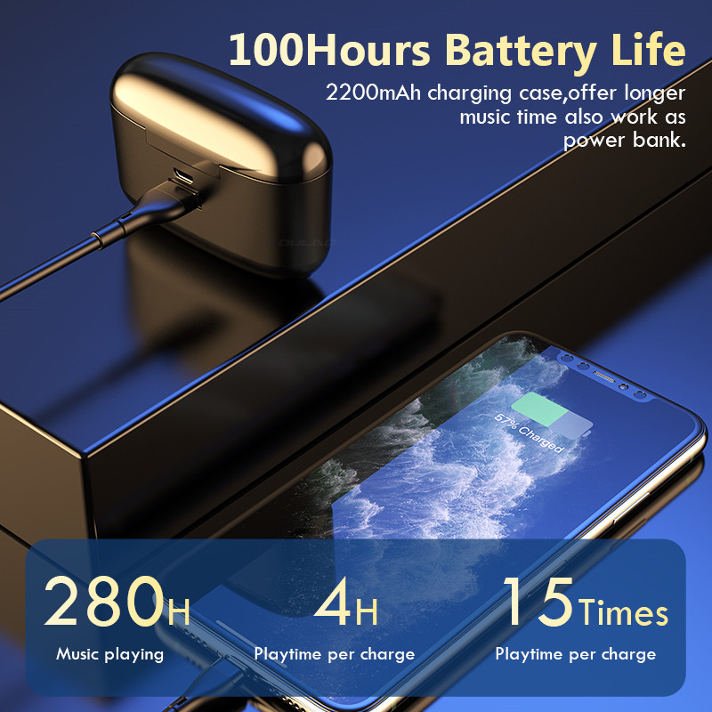Three true electricity display.The left and right headphones and the remaining power of the charging chamber are displayed in full real time.Multi-function mobile phone bracket.Support horizontal, vertical, watch live and watch movies without additional purchaseof mobile phone bracket.Prolessional designers conduc market research and deeply optimize the control of headphones.The operation does not press the ear and can be adjusted with a light touch.5.0 imported chips.