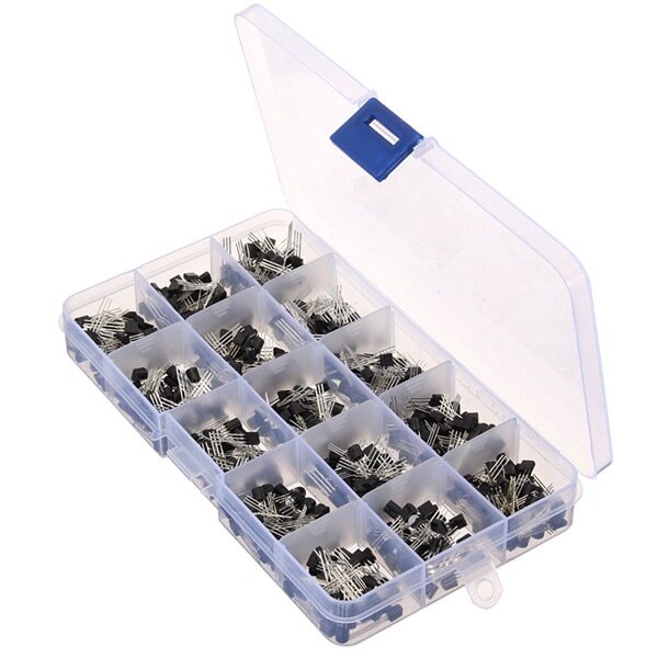 Geekcreite 600pcs 15 types de transistor de valeurs TO-92 NPN Kit PNP 30-160V 50-1000mA NPN / PNP