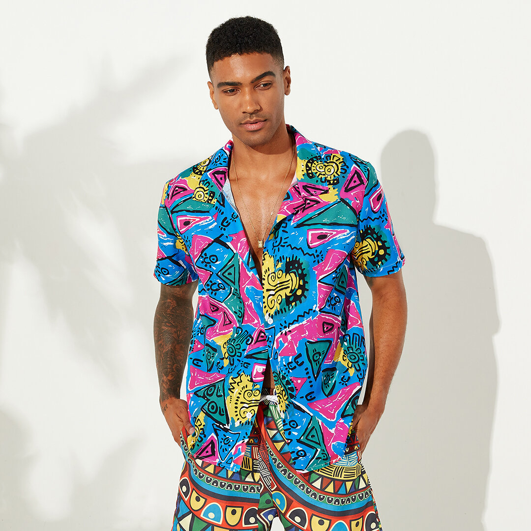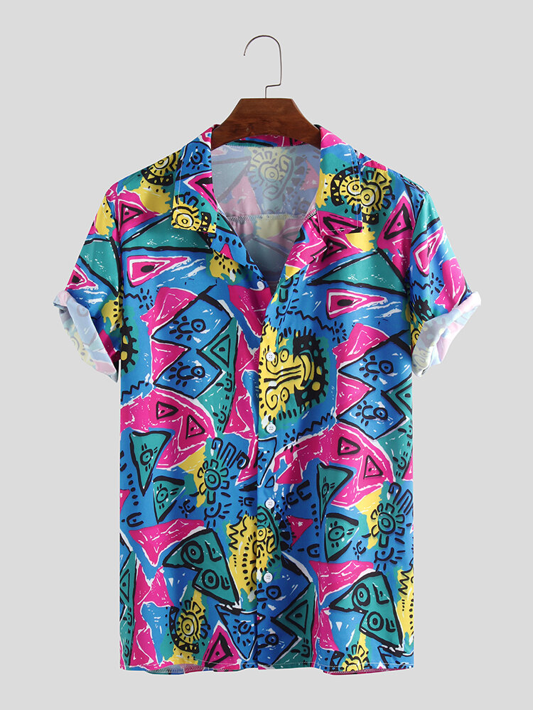 Geometry Graffiti Short Sleeve Colored Shirts – XL Blue