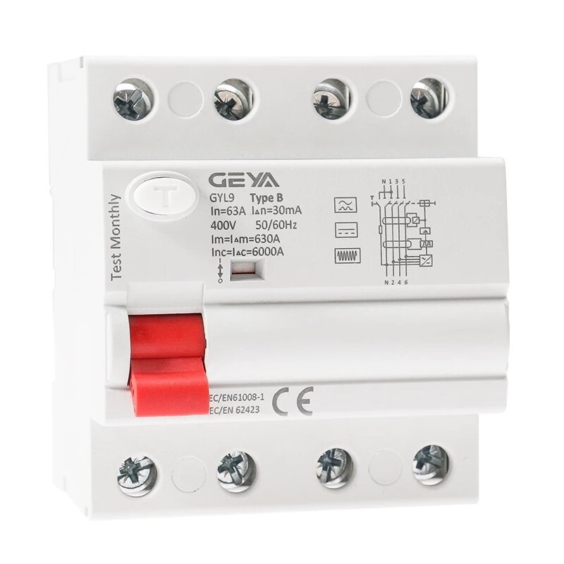 GEYA GYL9 4P 25A 40A 63A 30mA B Type RCCB disjoncteurs e courant residuel disjoncteurs differentiels interrupteur de securite – 40a