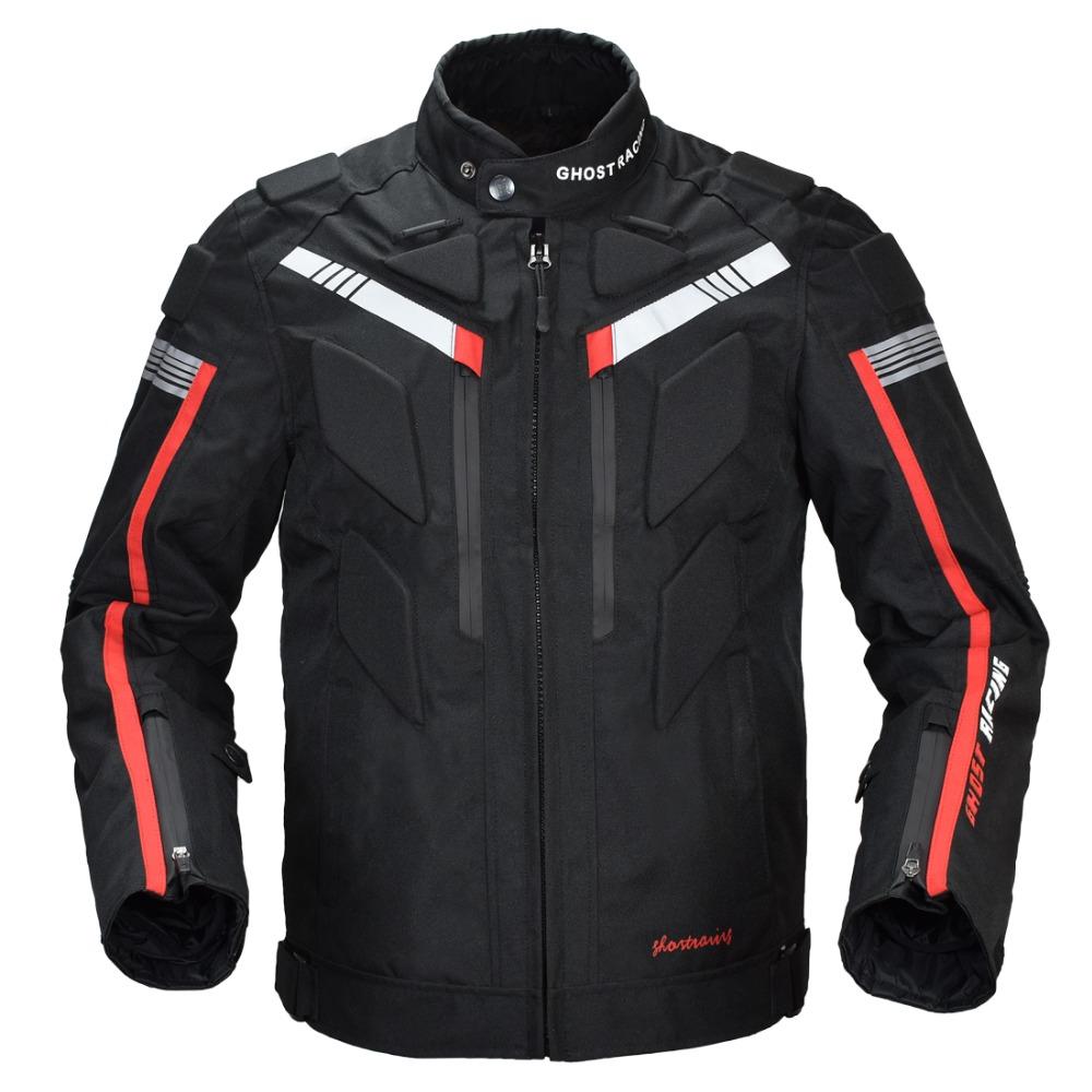 : Contains removable warmth cotton liner, you can wear in cold or warm weather Removable foam based Certified five protectors on the back, shoulders and elbows Adjustable Cuff zip improves the range of fit and comfort Windproof, cold-proof, water repellent Specification: : GHOST RACING Outer Fabric Material: 600D Oxford cloth Inner Linner Material: Cotton Soft protectors on the shoulder, elbow and back EVA material . Solor:Black,Gray Size: M, L, XL, XXL, XXXL Season: For spring, summer, fall, winter Package Included: 1 X Motorcycle Jacket 1 X Removable Warm Liner 1 X Removable Back Pad 2 X Removable Shoulder Pads 2 X Removable Elbow Pads
