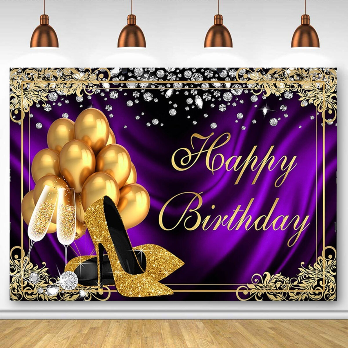 Glitter adulte fete d’anniversaire fond photographie tissu ballon talons hauts diamant fond Photo – 250 * 180 CM