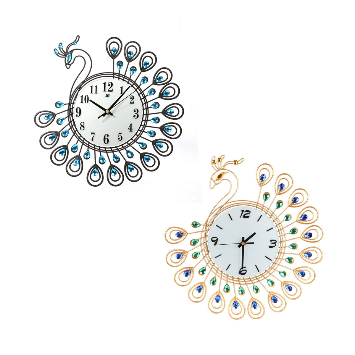 Grand 3D or diamant paon horloge murale montre en metal pour la maison salon decoration bricolage horloges artisanat ornements cadeau – Noir