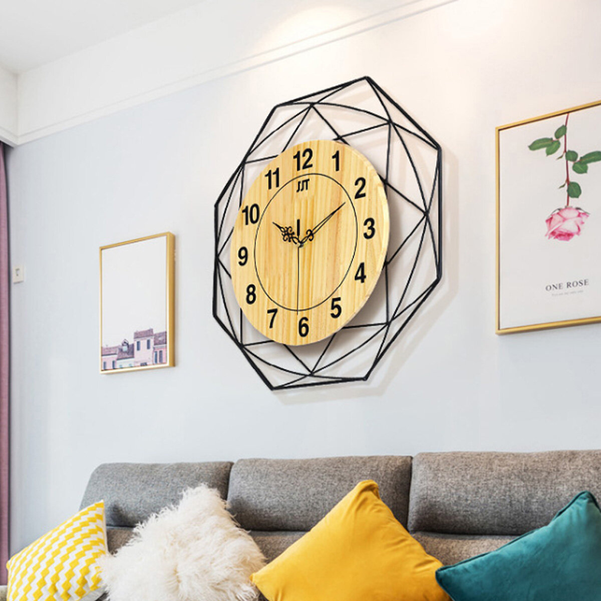 Grande horloge murale en bois large claire de 42cm avec des autocollants d’oiseaux pour le salon d’etude – 1