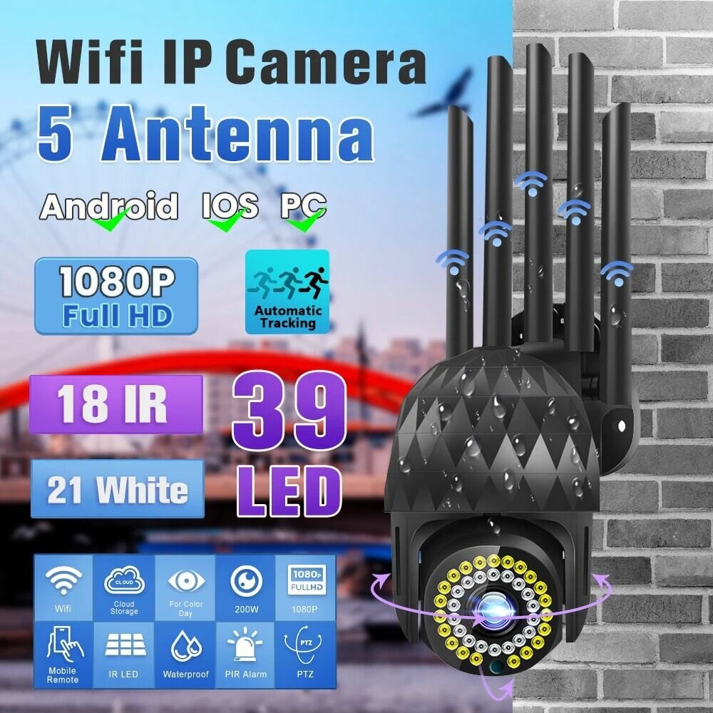 Guudgo 1080P 39 LED 5 XZOOM Exterieur PTZ IP Camera Noire Audio Bidirectionnelle Camera Wifi Auto etanche Vision Nocturne CCTV Video Surveillance