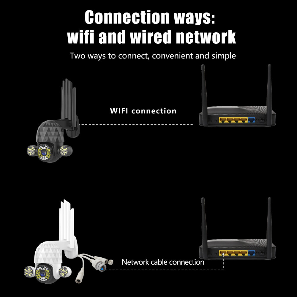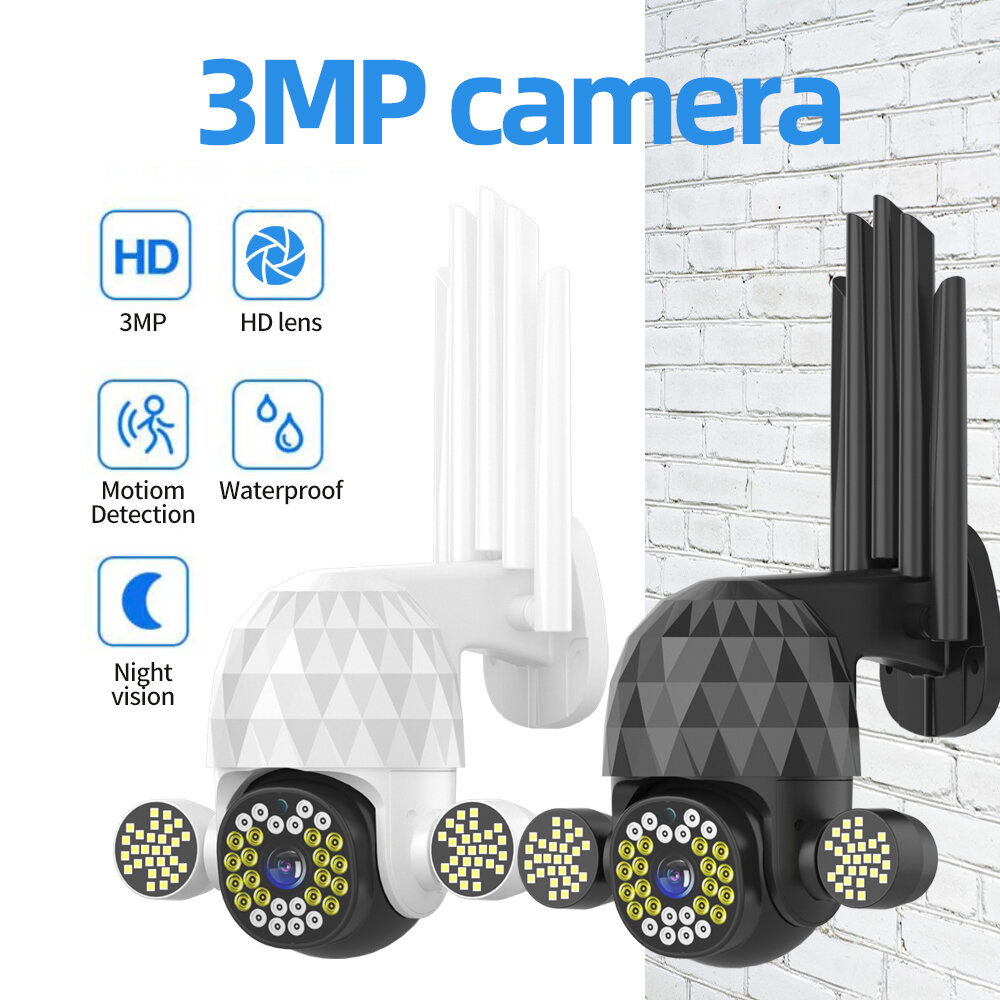 Guudgo 3MP HD PTZ Securite Wifi Camera IP Vision Nocturne H.265 IP66 etanche 360 e Detections De Mouvement Panoramique 5 x Camera Zoom – Noir
