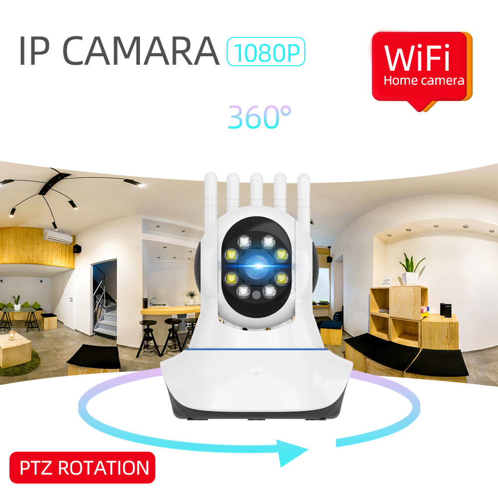 Guudgo Five Antenna 1080P Camera IP WIFI PTZ Angle de vision e 360 e Audio bidirectionnel Vision nocturne Stockage en nuage Detections de mouvement etanche Double source de lumiere Moniteur pour bebe – Prise UE