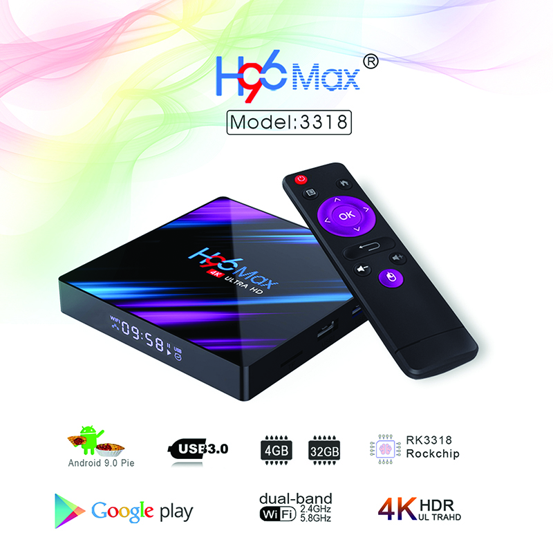H96 max 3318 Quad-Core 4+64G Android 9.0 HD Smart Network Media Player TV Box EU plug