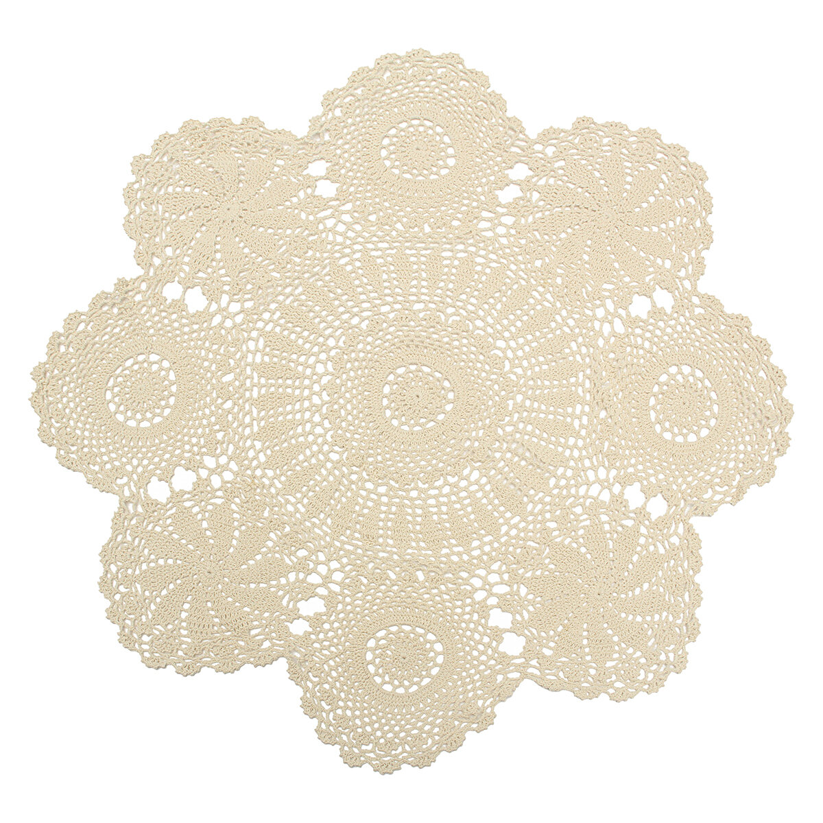 Hand Crochet Lace Floral Doily Placemat Table Cloth Cotton Round 70CM Beige Round Table Cover