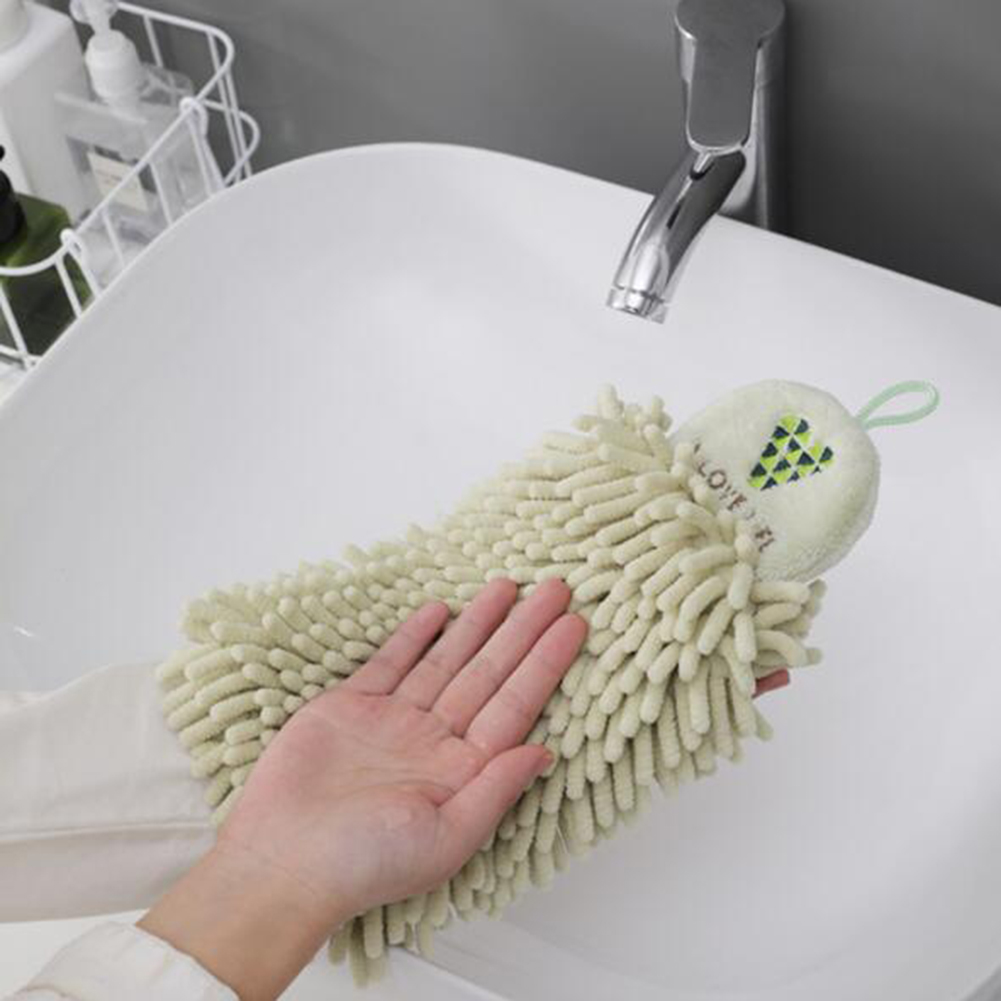 Hand Towels Chenille Hanging Absorbent Kitchen Embroidered Cleaning Tool Bean Green