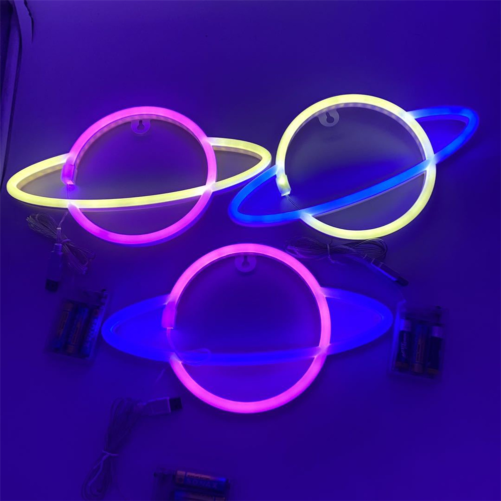 Hanging Planet-shaped Neon Night Light Ip42 Waterproof Rust-proof For Room Wall Kids Bedroom Birthday Party Bar Beach Wedding Decoration Blu