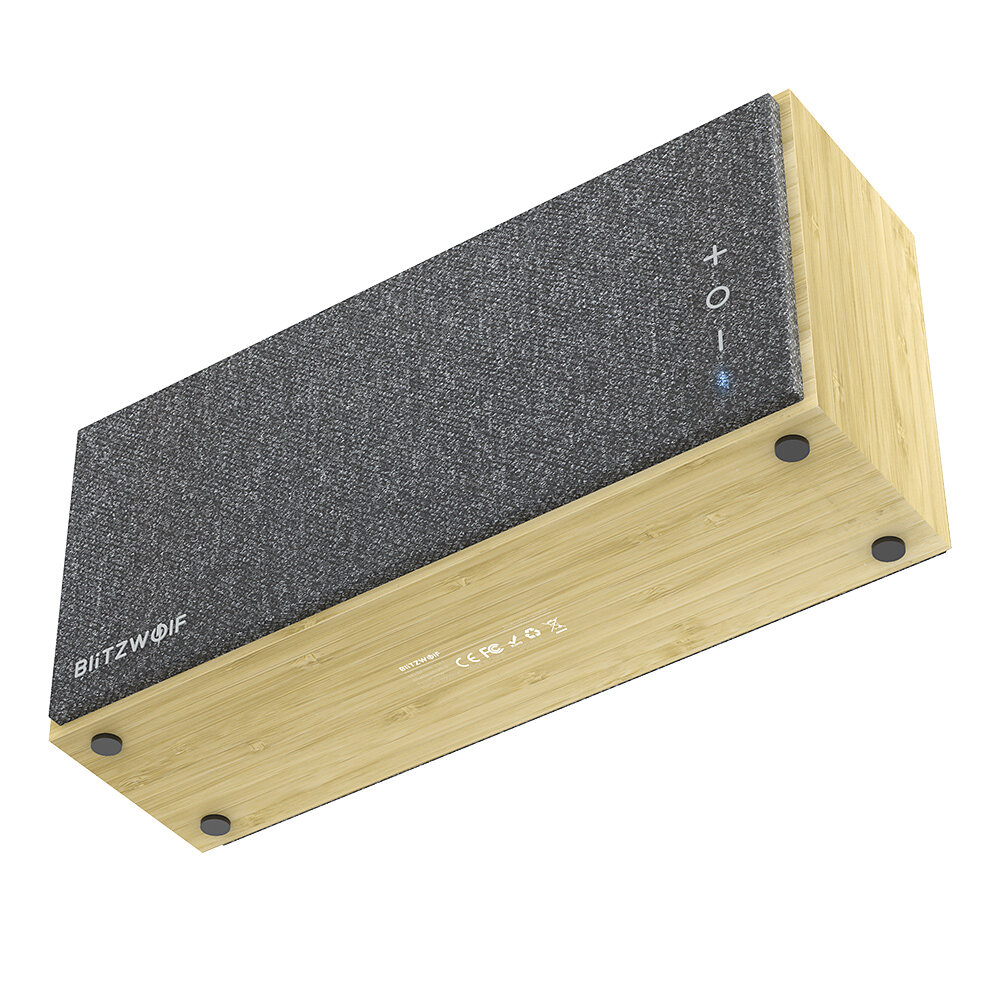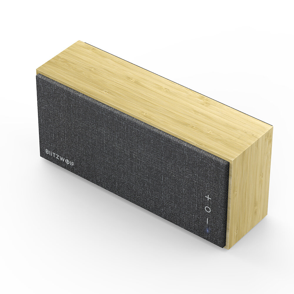 Haut-parleur bluetooth en bambou BlitzWolfe BW-HA1 avec materiau en bambou, style minimaliste, aigus, tenor, equilibre des basses et longue duree de travail – Gris