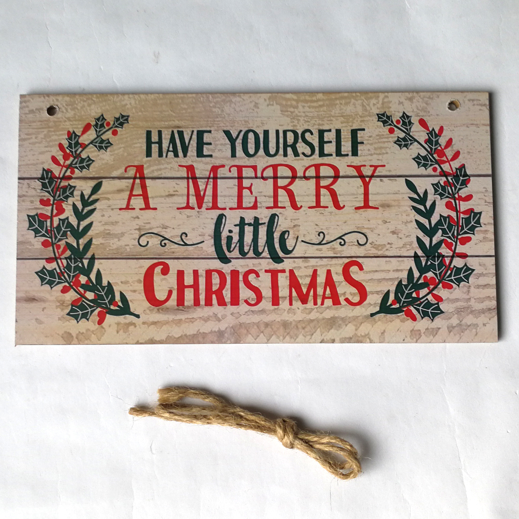 Have Yourself a Merry Little Christmas Wooden Plank Design Hanging Sign for Home Decor