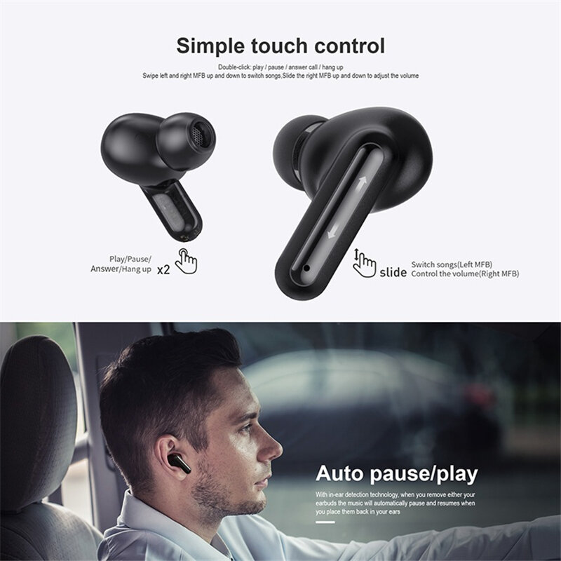 Havit I99 TWS ecouteurs sans fil Bluetooth ecouteurs Commutateur e effet Hall Contrele tactile HD Appels Casque de jeu stereo Type-C ecouteurs de charge – Noir