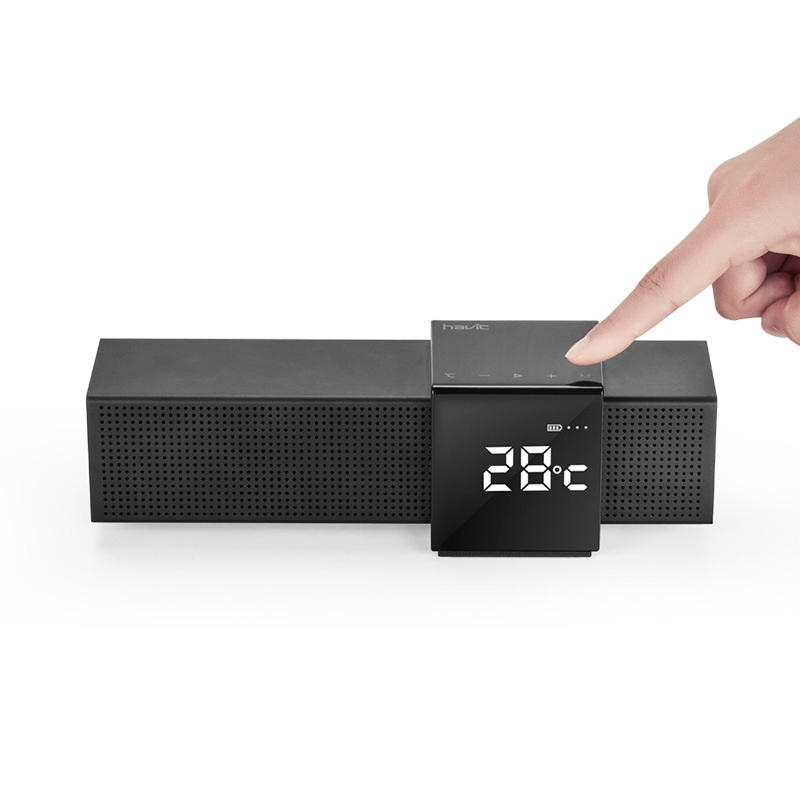 Havit M28 Haut-parleur Bluetooth sans fil portable Double Unites LED Affichage Reveil Radio FM Carte TF Smart Touch Haut-Parleur avec Micro – Noir
