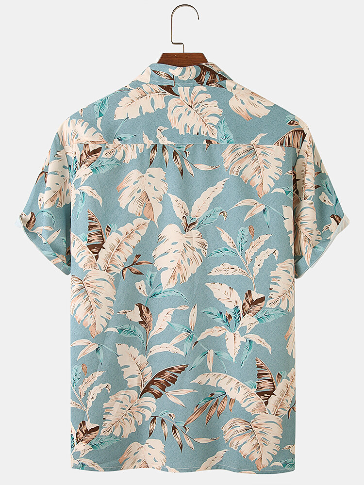 Description:Brand:ChArmkpRDecoration:PocketFit Type:Loose FitMaterial:PolyesterNeckline:LapelPattern Type:PlantsScene:Leisure,CasualSeason:SummerSize:XXL,L,S,MSleeve:Short SleeveStyle:Casual,Hawaii Style