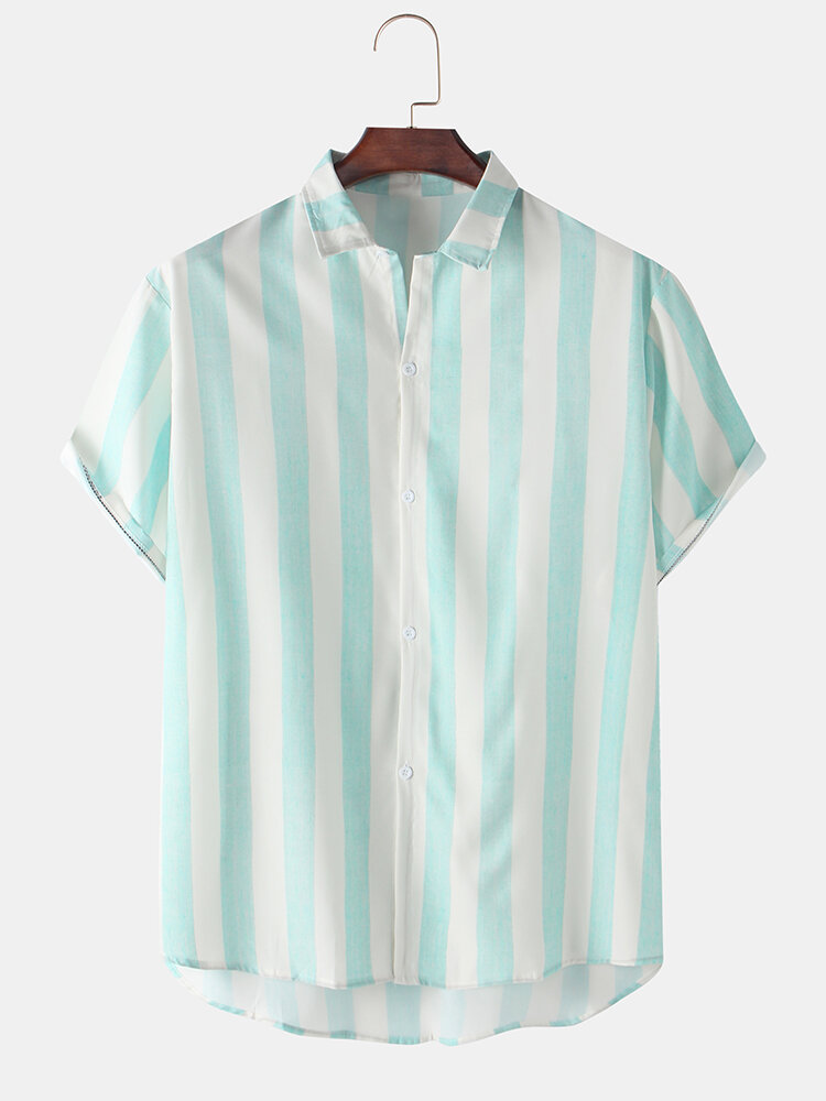 Description:Fit Type:Regular FitMaterial:PolyesterNeckline:LapelPattern Type:StripedScene:Leisure,Home,Beach,CasualSeason:SummerSize:XXXL,XXL,L,XL,XXXXL,MSleeve:Short SleeveStyle:Casual,Hawaii Style