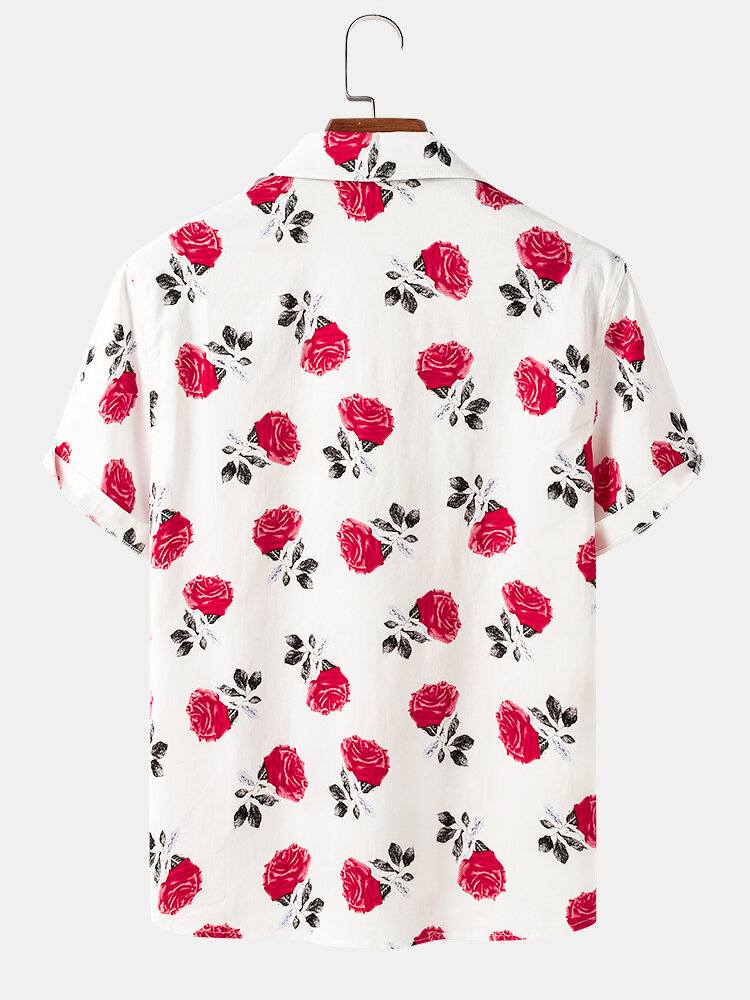 Description:Fit Type:Regular FitMaterial:CottonNeckline:LapelPattern Type:Ditsy FloralScene:Leisure,Home,Beach,CasualSeason:SummerSize:XXL,L,S,XL,MSleeve:Short SleeveStyle:Casual,Hawaii Style
