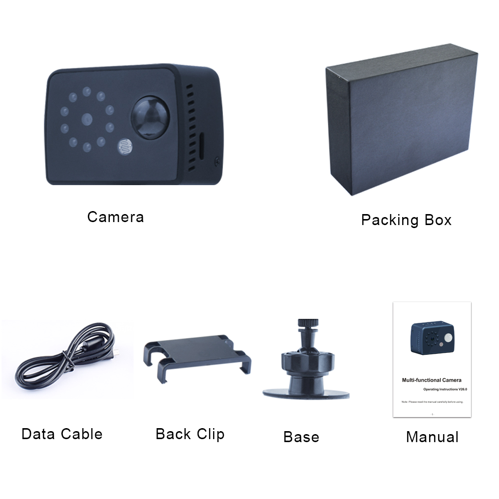 HD 1080P motion sensor automatic camera, built-in battery.Can be plugged into the computer, plug and play, no drive needed.With night vision function (2 meters), 10pcs infrared lights.Comes with magnetic base, easy to place and fix.120 degrees lens, video recording synchronization, taking photos, motion detection, video lights off, loop coverage, frame rate 30fps.