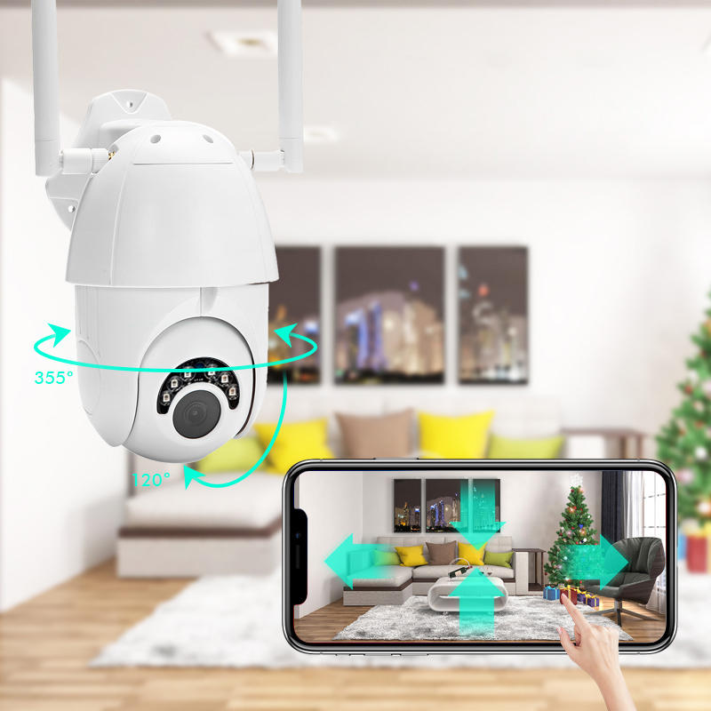 Features: -Fast Easy WiFi Setting: This indoor home security camera is wireless. Power on the camera, set WiFi for the wireless camera quickly in few minutes. -Two-way Audio: Responsive and advanced microphone with a built-in anti-noise filter for a clear 2-way Audio experience. Both parties talk and listen freely for maximum flexibility. -Day & Night, Indoors & Outdoors: This ip camera can see up to 60 meters away. Advanced night vision with infrared LED beads, the viewing distance to 60 meters in pitch dark with no light pollution, so your baby or pet will not be disturbed by LED glare. -Smart Pan Tilt Zoom Dome Camera: You can remote monitor this dog camera via iOS/Android mobile phone, smart pan and Tilt indoor home security camera system with 355° horizontal and 120° vertical rotation range to create a complete 360°. -Motion Detect: You can set the sensor sensitivity manually in camera APP. Once a motion is detected(10m motion d etection distance), the camera will send "Notification Alarm" to your phone, then you can log into the APP to see what's going on in real time. -Support Cloud & TF Card: This home security camera system support motion aleart push to mobile phone and support Max. 64GB micro TF card (TF card not included) and cloud storage record (free for 30 days), watching videos anytime, anywhere Specifications: Lens: 3.6mmImage sensor: 1/3 comsEffective pixels: 2 million dpiHorizontal resolution: >1200TV linesDay and night mode: Automatic IP-CUT switching VideoVideo pixel: 1080PVideo coding: H.264; MPEG4 InternetNetwork Protocol: TCP/IP, HTTP, DDNS, PPOE, NIP, FTP, RTSP, RTPAccess Protocol: OnvifStorage: 8-64G TF card & cloud storage (30 days for free) OtherViewing angle: 355 degrees horizontally; 120 degrees verticalInfrared light: 4 infrared lights, distance up to 60 metersInput voltage: DC12V 2APower consumption: 10W (daytime); 15W (night)Working temperature: -40 ° C -70 ° CWaterproof Level: IP66 Package Includeds: 1 x 1080P Security Camera1 x Manual