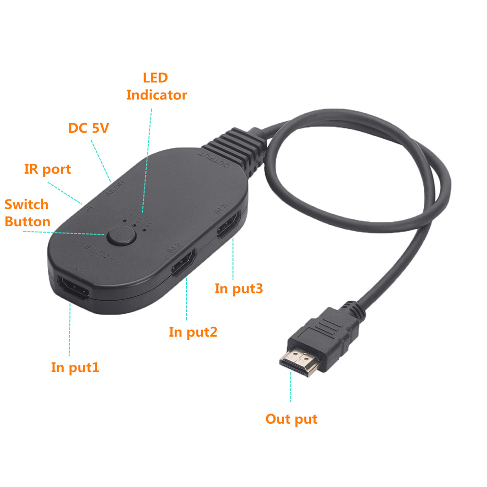 Hdmi Switcher 3-in-1 out 4k 60hz Hd Video Audio Converter Splitter Adapter