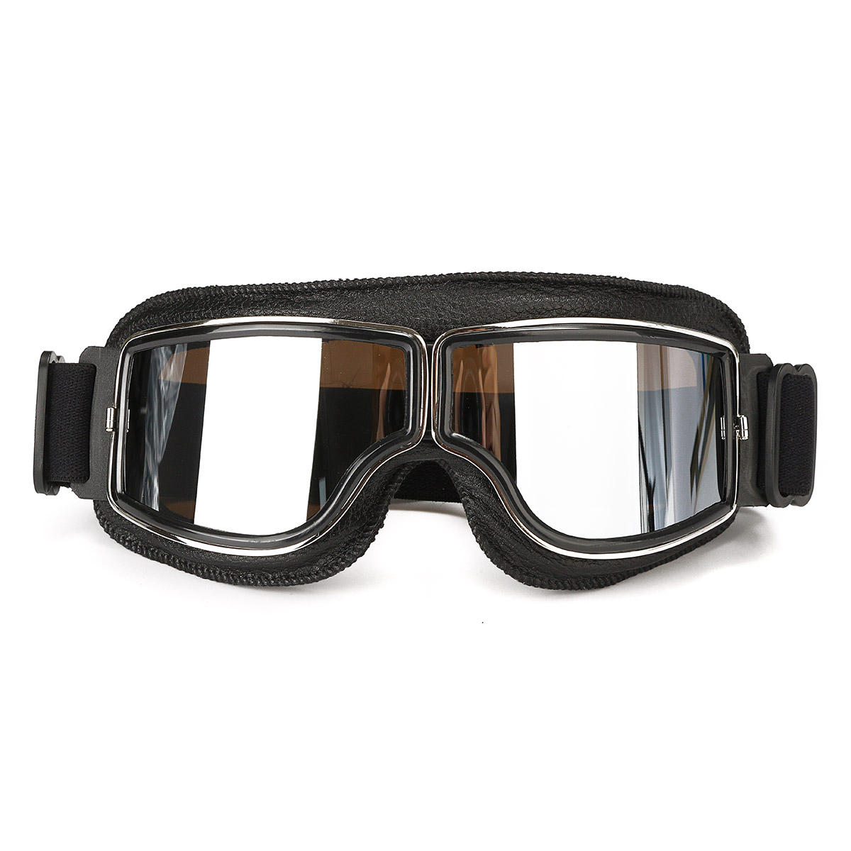 : Adjustable head strap. Comes with cloth bag. Multi-function: windproof, dustproof, protect eyes. Sponge and leather material, soft and comfortable. Light weight, Shock resistance and anti-UV sigle-lens. Use aerodynamic design to ensure air circulation as far as possible. Specification: Gender: Unisex Adults Material: Frame: ABS Lens: PC lens Sponge Frame: Sponge covered by Leather Strap: NYLON 60 percent , POLYESTER 20 percent , RUBBER 20 percent Frame color: Silver,Black Lens color: Clear, Yellow, Silver, Dark brown Size: about 17.7cm L x 7.5cm W Application: Motorcycle, Cycling, Climbing, Cross country etc Note: 1. Please check the size measurement chart carefully before making payment. 2. Please allow 0.5-1 inch difference due to manual measurement. 1 inch,2.54cm 3. The color of the actual items may slightly different from the listing images due to different computer screen, thanks for your understanding. 4. Helmet is not included. Package Included: 1 X Motorcycle Goggle Glasses , , , , , ,