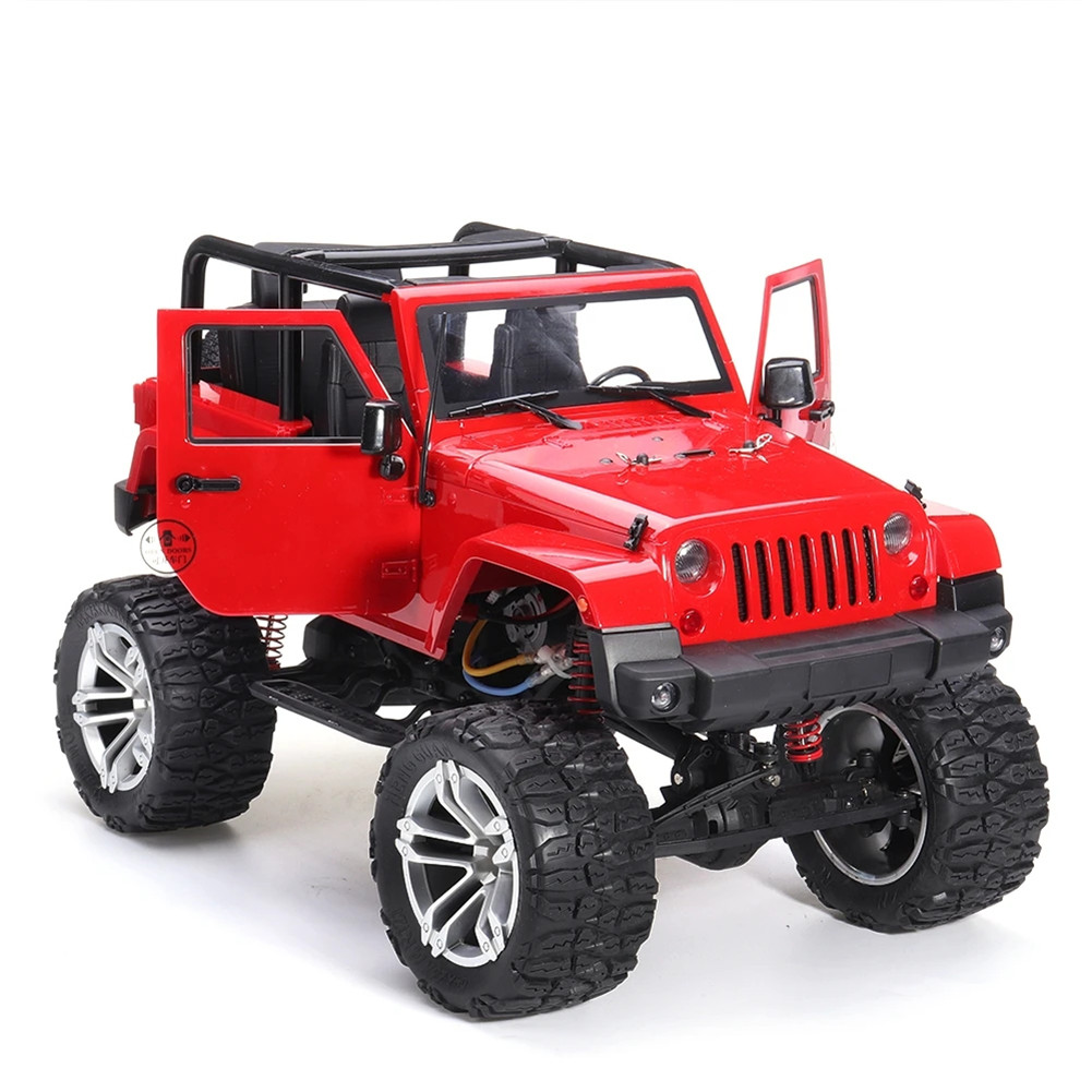 This rc car can move forward, backward, turn left/right, and LED light function, the doors can be opened, proportional steering and throttle. The motor gears can be set, 26T/28T/30T. Adjustable secondary mechanical gear of central transmission. Up to six transmission ratios can be set. Front and rear axles adopt tapered-to-straight high-load reduction gearing. Large stroke damping adjustable shock absorber. Variable stroke ball type universal drive shaft. Front and rear independent link type bridge hanging system.