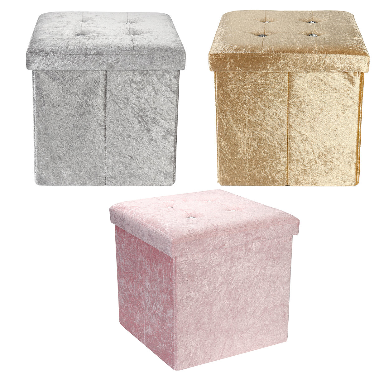 Highlight Velvet Storage Stool Multifunctional Sofa Ottoman Footrest Folding Storage Box Bench Seat Footstool Square Chair Home Office Furniture – Ch
